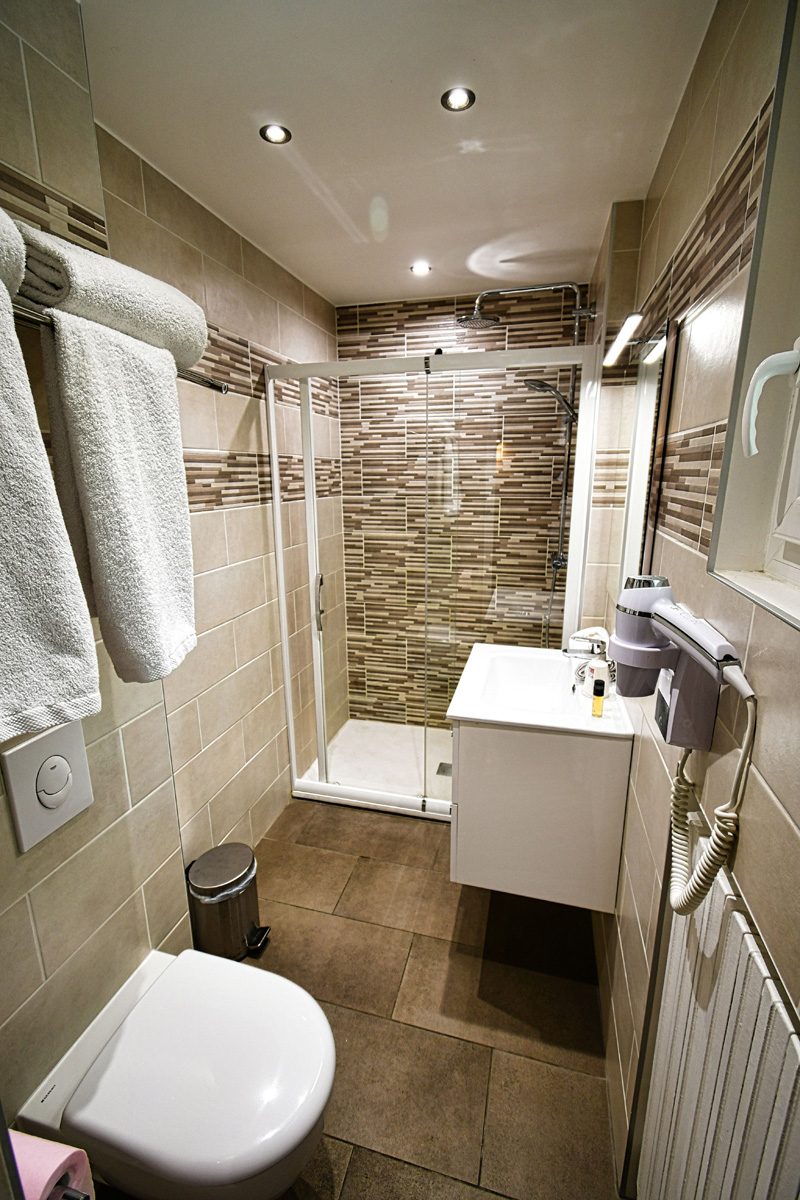 Toutes les chambres de l'hôtel sont équipées d'une douche ou d'un bain (selon les disponibilités), d'une salle d'eau et de WC privatifs, d'une ligne de téléphone directe, d'une télévision équipée d'un récepteur CanalSat ®. Les machines à laver de l'hôtel, ainsi qu'un fer et une table à repasser, peuvent également être mises à la disposition des occupants de l'hôtel.