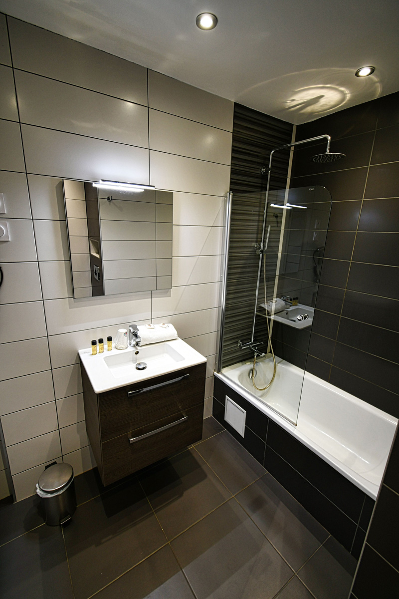 Toutes les chambres de l'hôtel sont équipées d'une douche ou d'un bain (selon les disponibilités), d'une salle d'eau et de WC privatifs, d'une ligne de téléphone directe, d'une télévision équipée d'un récepteur CanalSat ®. Les machines à laver de l'hôtel, ainsi qu'un fer et une table à repasser, peuvent également être mises à la disposition des occupants de l'hôtel.